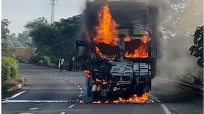 चलते ट्रक में भड़की आग, ड्राइवर और क्लीनर ने जान जोखिम में डालकर बचाई जान
