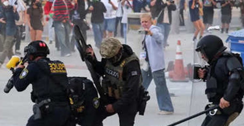 पैरामाउंट शहर में एक औद्योगिक पार्क (IT park) के बाहर दंगारोधी गियर और गैस मास्क पहने बॉर्डर पैट्रोल कर्मियों ने पहरा दिया, और जब राहगीर और प्रदर्शनकारी बीच में और सड़क पर जमा हो गए, तो उन्होंने आंसू गैस का इस्तेमाल किया. कुछ लोगों ने स्मार्टफोन पर घटनाओं को रिकॉर्ड करते हुए अधिकारियों का मजाक उड़ाया.