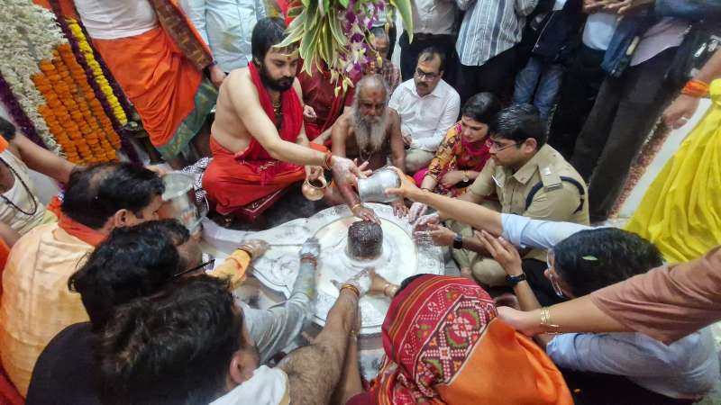 रात 12 बजे पूजन के दौरान उज्जैन प्रभारी मंत्री गौतम टेटवाल, लोक स्वास्थ्य यांत्रिकी मंत्री सम्पतिया उइके, पुलिस एवं प्रशासन के अधिकारी परिवार संग शामिल हुए. कुछ ही देर बाद आम भक्तों के दर्शन का क्रम बरसते पानी में शुरू हुआ. मंत्री कैलाश विजयवर्गीय ने भी परिवार संग रात 2 बजे दर्शन किए. दर्शन का क्रम अब 29 जुलाई की रात 12 बजे तक जारी रहेगा. मंगलवार को दोपहर 12 बजे शासकीय पूजन कलेक्टर, एसपी, कमिश्नर परिवार संग एवं संध्या पूजन महाकाल मंदिर के पुजारी करेंगे. इसे त्रिकाल पूजन कहा गया है.