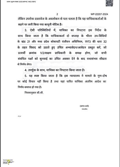 इंदौर। संविधान निर्माता डॉ. बाबासाहेब आंबेडकर नगर (महू) स्थित भीम जन्मभूमि स्मारक विवाद में माननीय हाईकोर्ट खंडपीठ इंदौर ने 3 नवंबर 2025 को धारा 32 और नियम 21 के तहत कार्यवाही के आदेश उपसचिव (उद्योग), पंजीयक भोपाल एवं सक्षम प्राधिकारी को जारी किए थे। उक्त आदेश के अनुपालन में पंजीयक, भोपाल के समक्ष जारी सुनवाई में समिति के कथित सचिव राजेश वानखेड़े ने समिति की जांच नहीं करने और आवेदकों के प्रकरण को खारिज करने हेतु आपत्ति लगाई थी। जिसको पंजीयक भोपाल ने खारिज करते हुए गुण–दोषों के आधार पर ही प्रकरण के निराकरण करने को योग्य बताया। जिससे अब नकली बहुमत बनाने के लिए अपने भाई भतीजों रिश्तेदारों और करीबियों को फर्जी सदस्यता बांटने के विवाद में वैध सदस्यों द्वारा की जा रही जांच और रिकॉर्ड जब्ती की मांग का रास्ता साफ होता दिखाई दे रहा है।