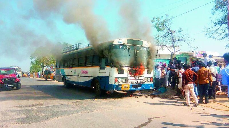 देखते ही देखते धू-धू कर जलने लगी पूरी बस