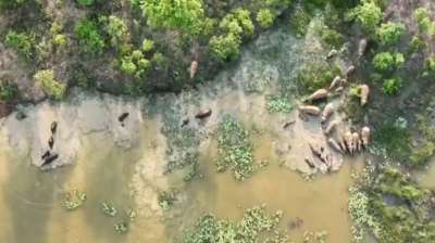 रायगढ़ के घोघरा डैम में 42 जंगली हाथियों का नहाते हुए वीडियो हुआ वायरल, ग्रामीणों को सतर्क रहने की सलाह