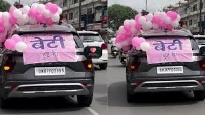 कार पर बैनर लगाकर अस्पताल से घर तक निकाली खुशी की झांकी